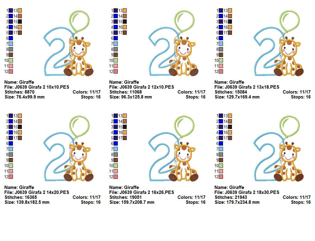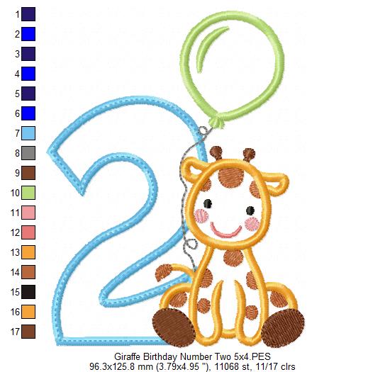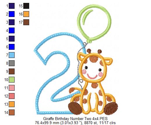 Matriz de Bordado Número 2 com Girafa e Balão – Ponto Aplique
