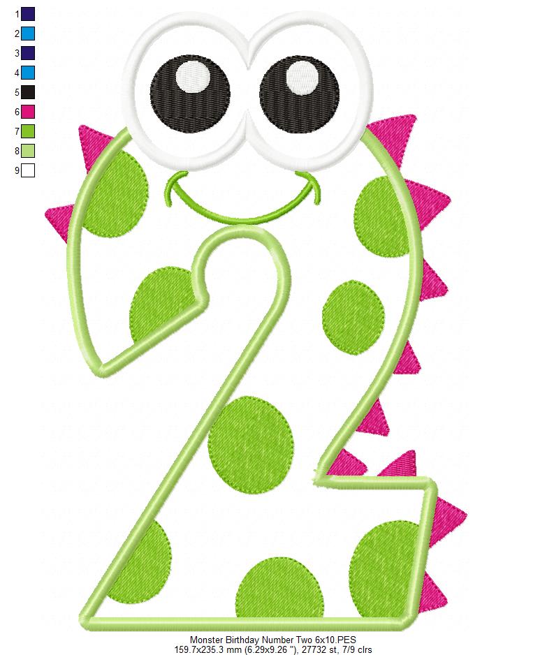 Matriz de Bordado Número 2 Monstrinho Divertido – Aplique