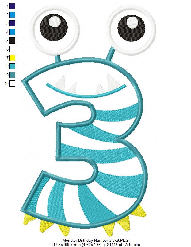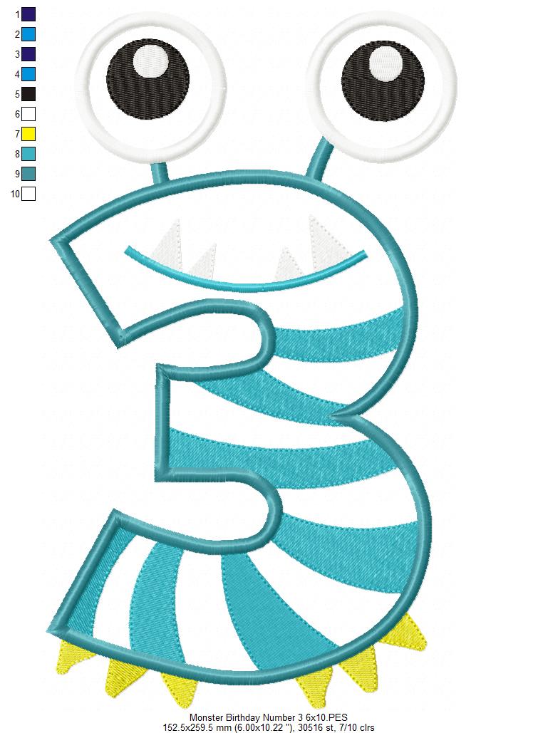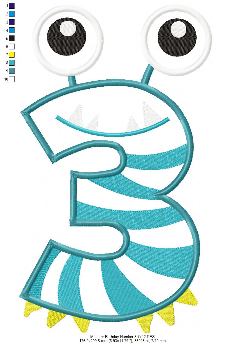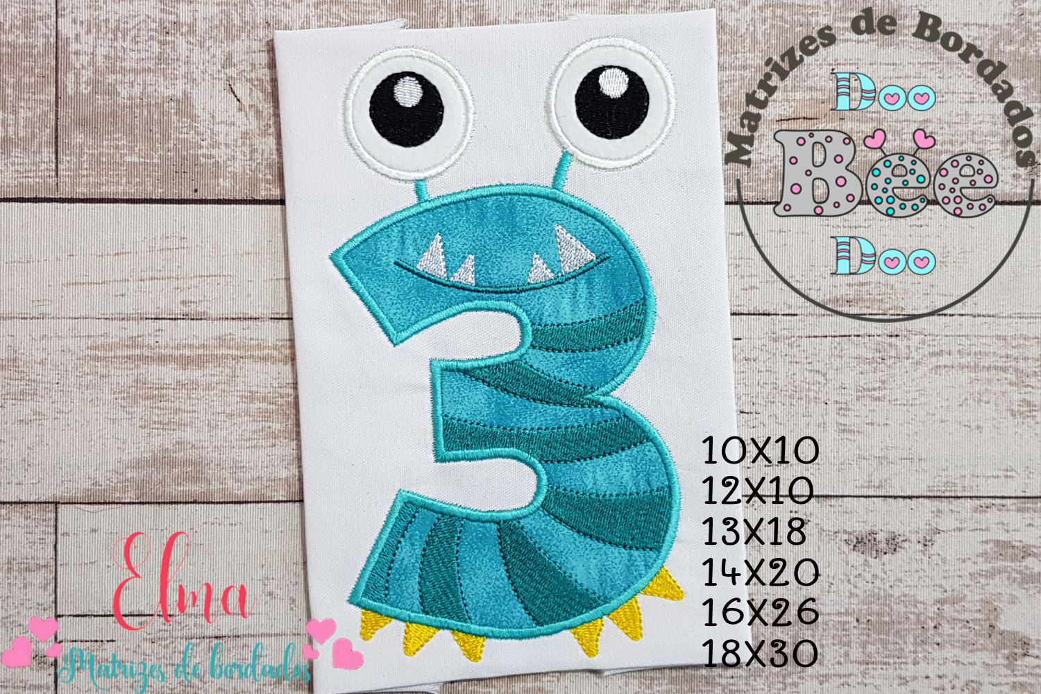 Matriz de Bordado Número 3 Divertido Monstrinho – Aplique