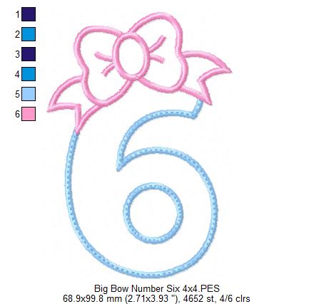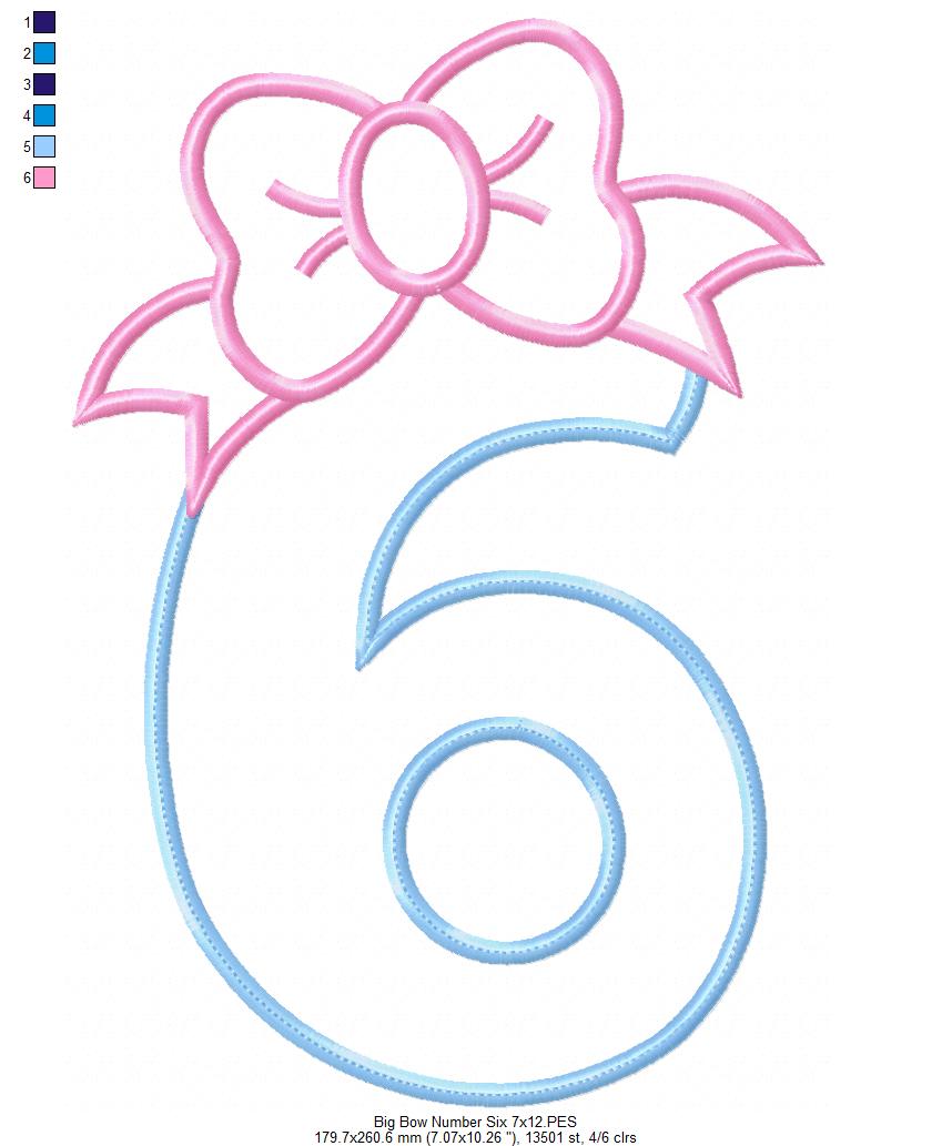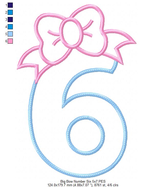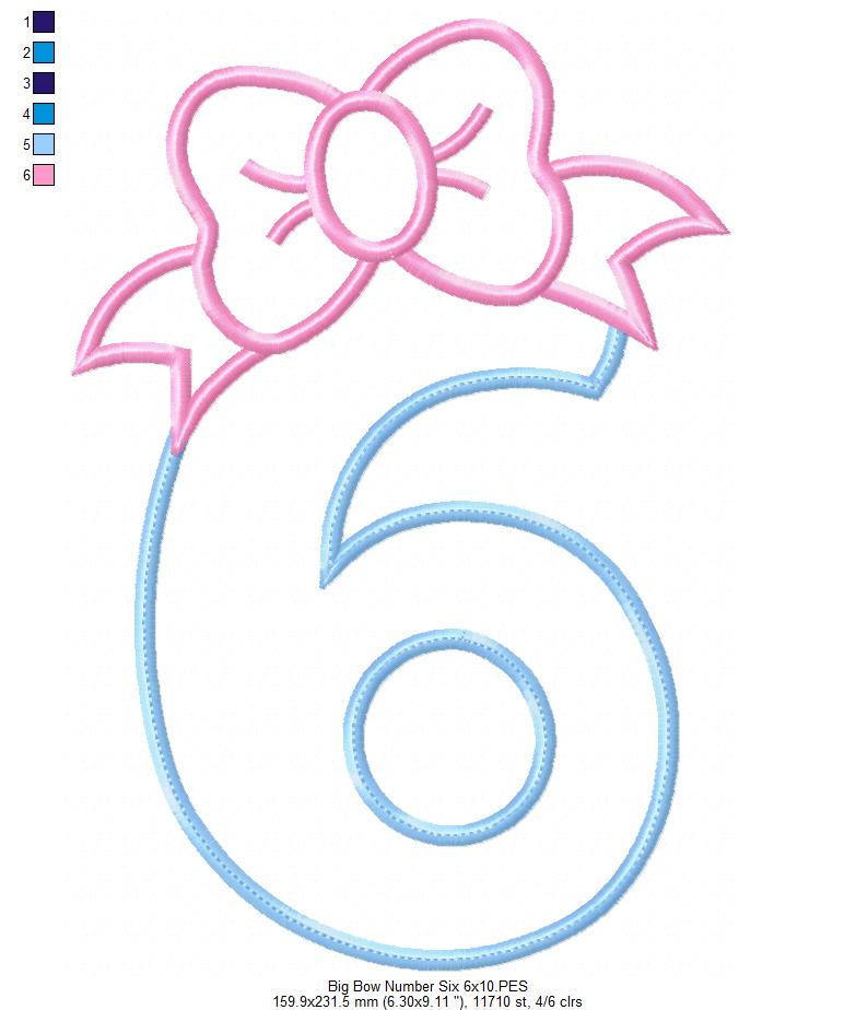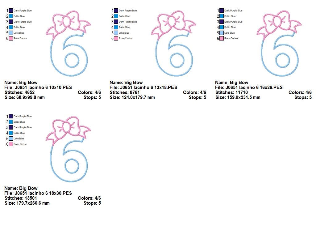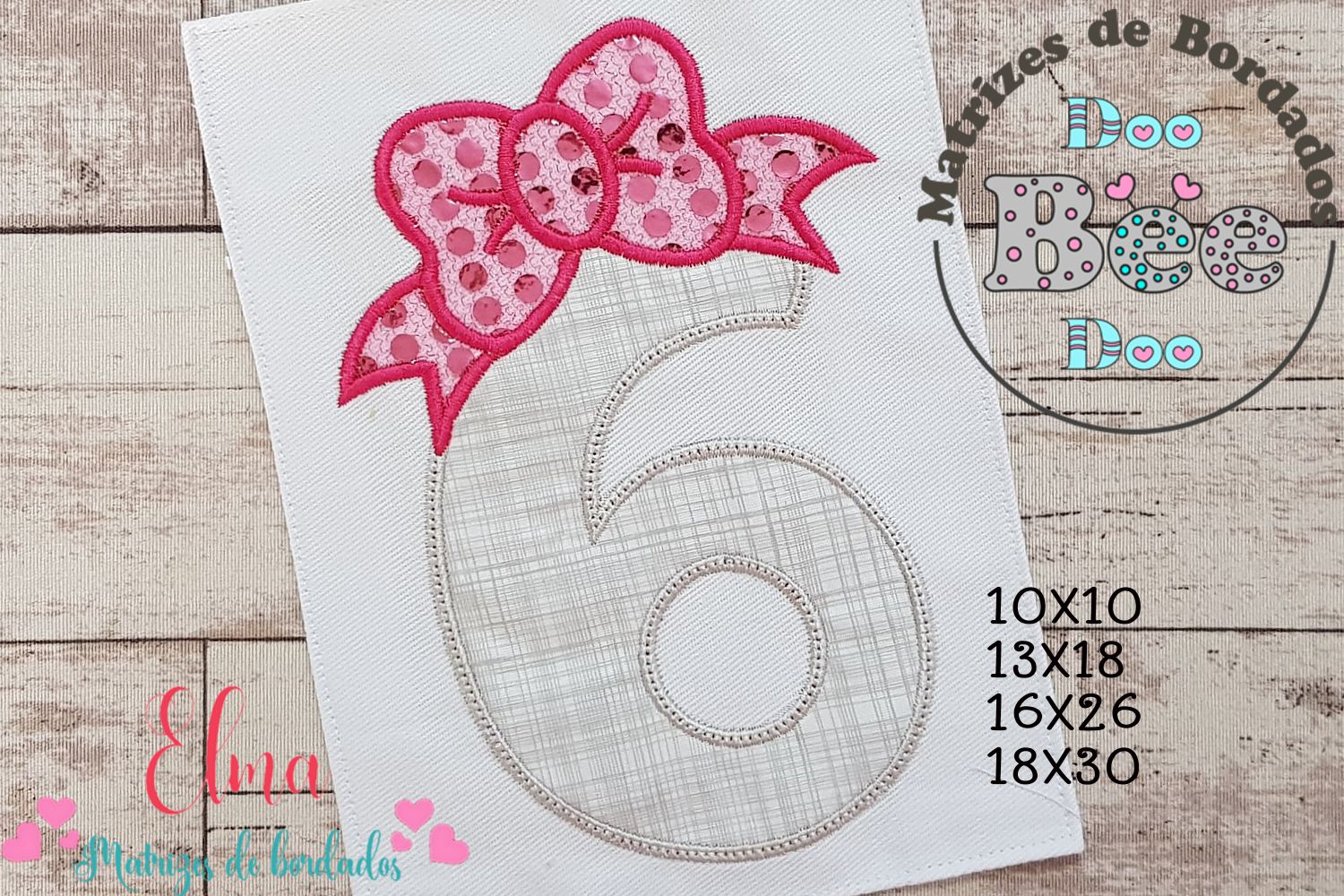 Matriz de Bordado Número 6 com Lacinho Fofo – Ponto Aplique