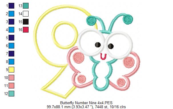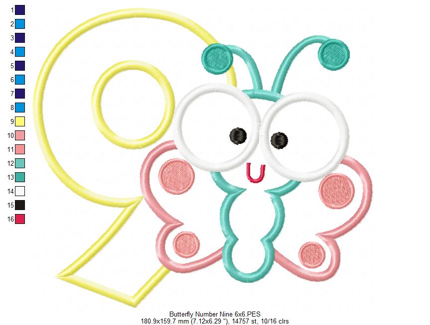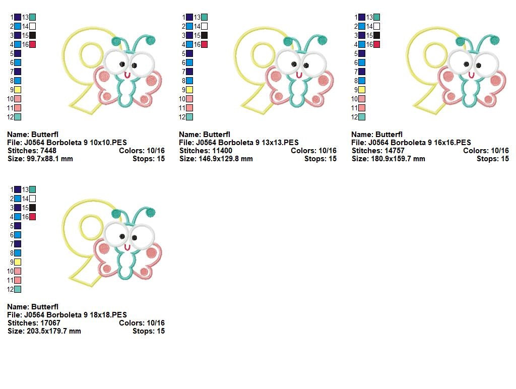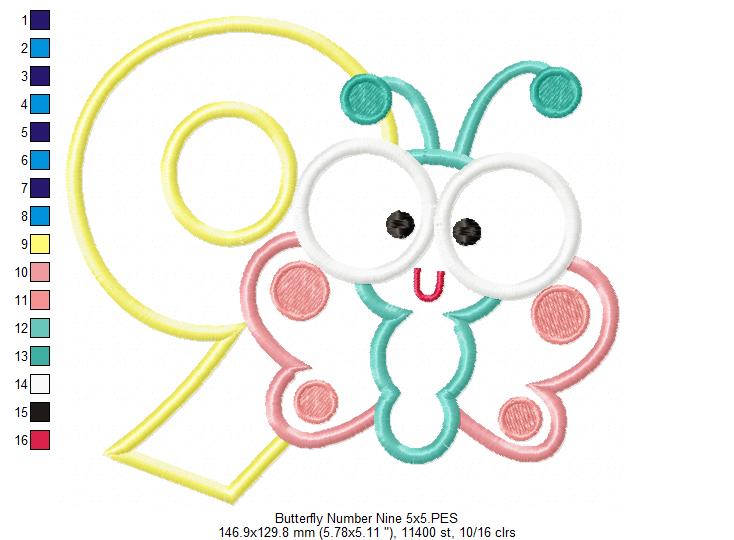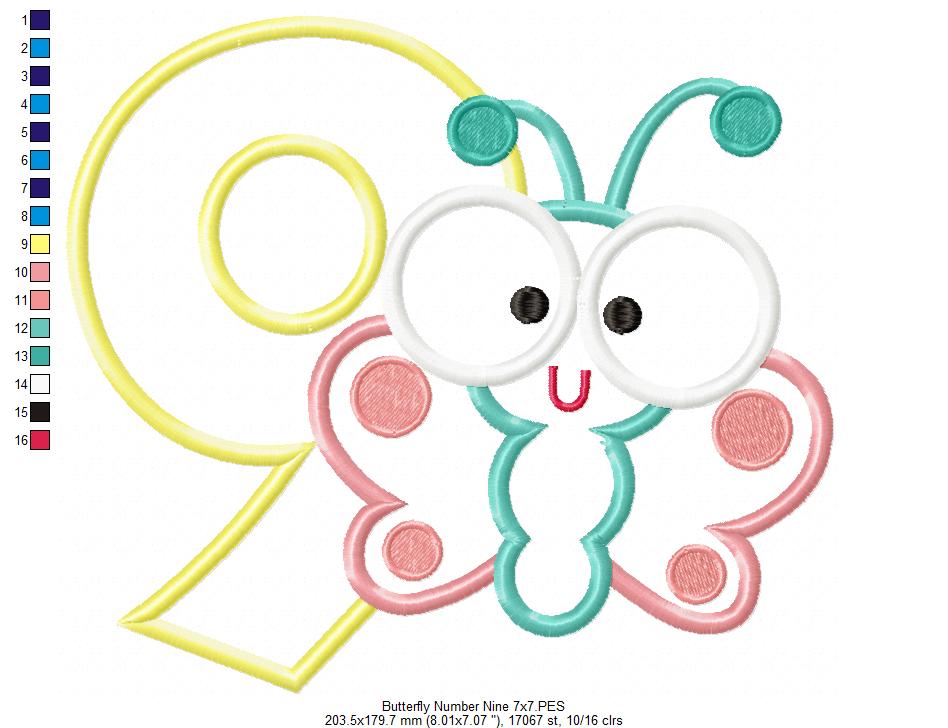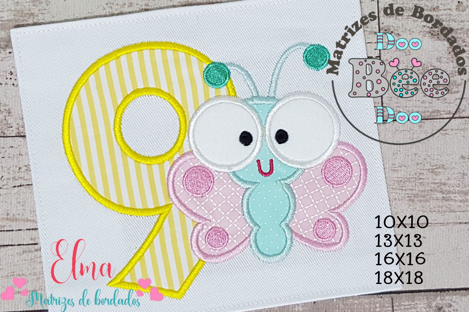 Matriz de Bordado Número 9 com Borboletinha Fofa – Aplique