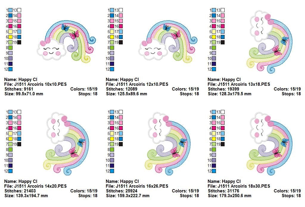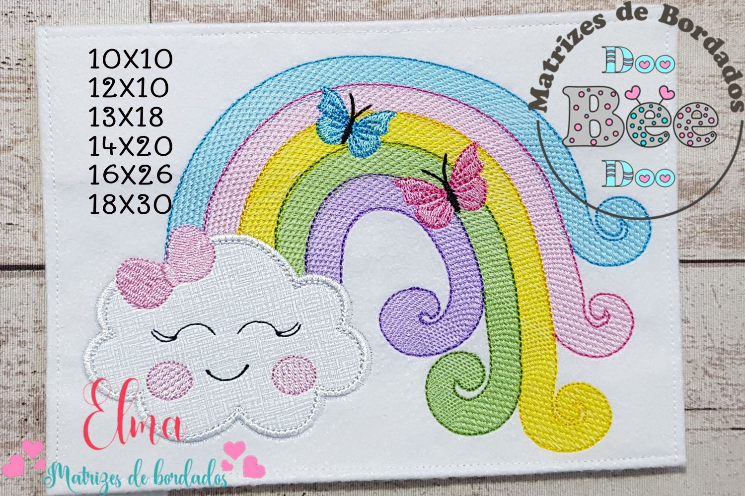 Matriz de Bordado Nuvem com Arco-Íris e Borboletas – Aplique