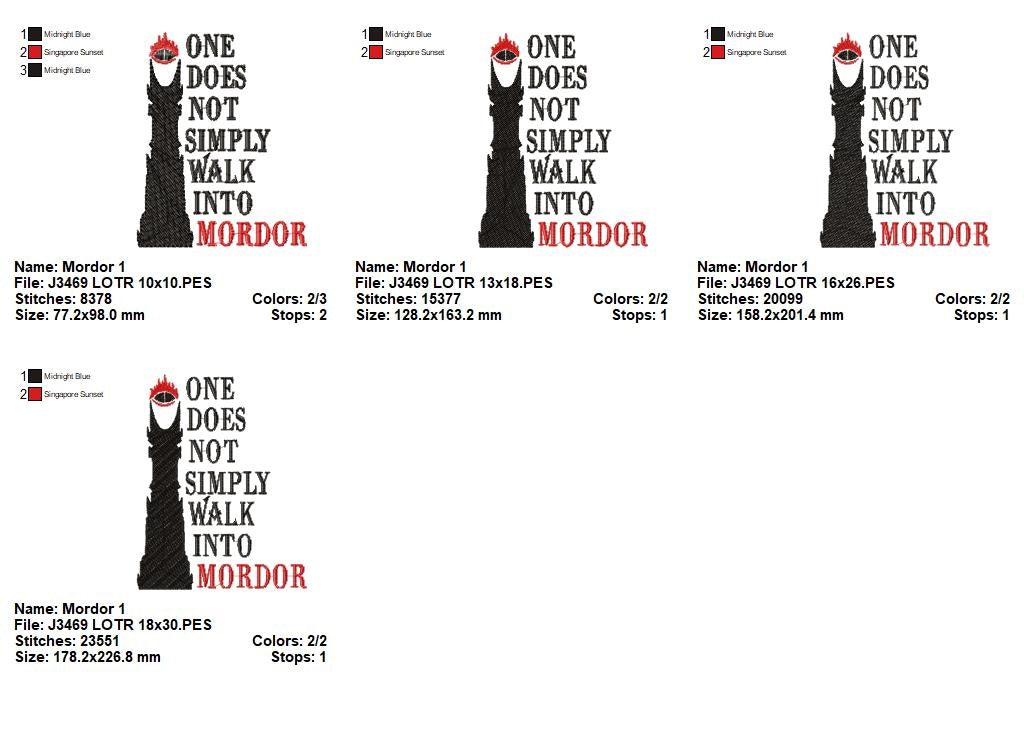 Prepare-se para bordar uma das frases mais icônicas da cultura nerd! 🧙♂️✨ A matriz "One Does Not Simply Walk Into Mordor" traz a famosa torre com o olho flamejante de Sauron em um design ousado e marcante, perfeito para quem ama "O Senhor dos Anéis" e quer dar um toque geek nas criações. Feita com ponto cheio, essa matriz garante um bordado nítido e poderoso em peças como necessaires, capas de livros, camisetas, toalhas, ecobags, almofadas e muito mais! 🖤