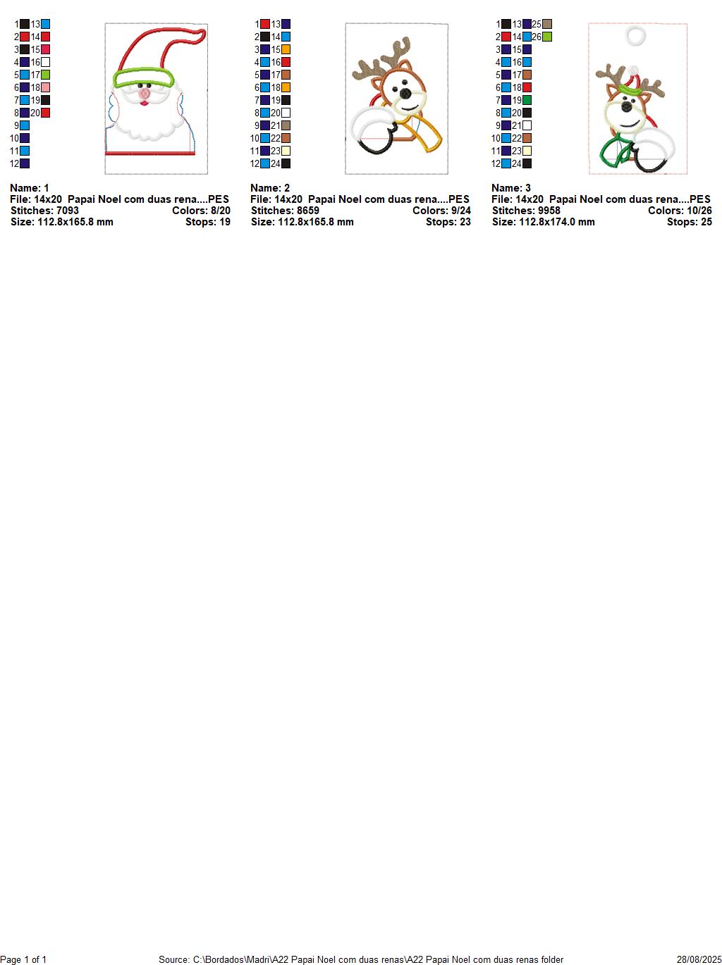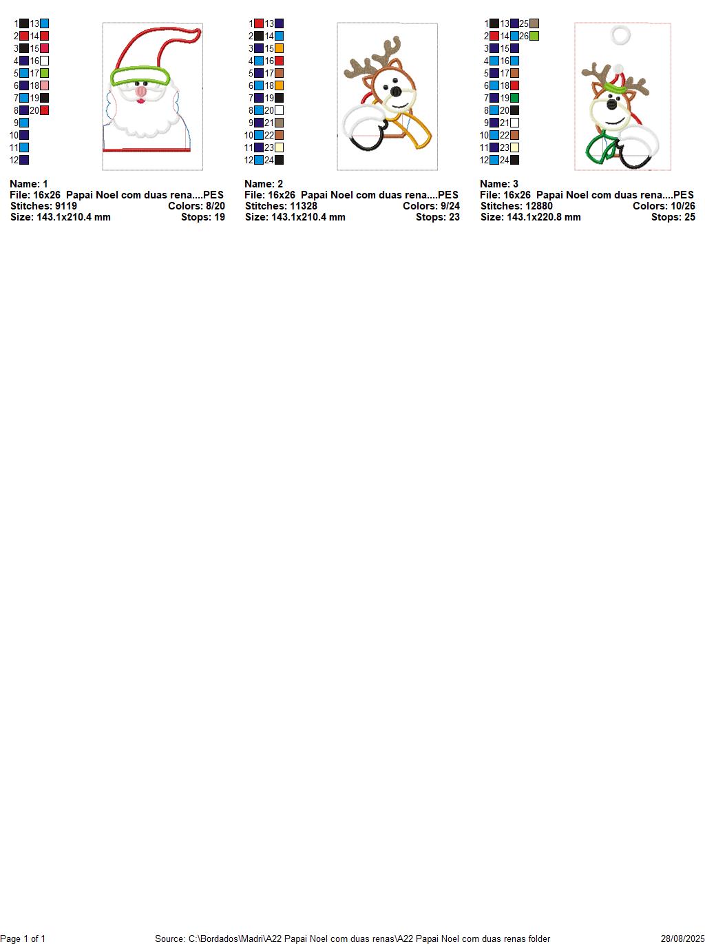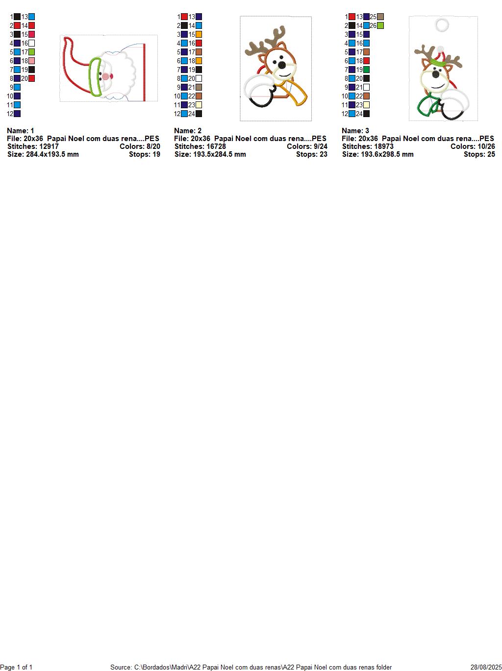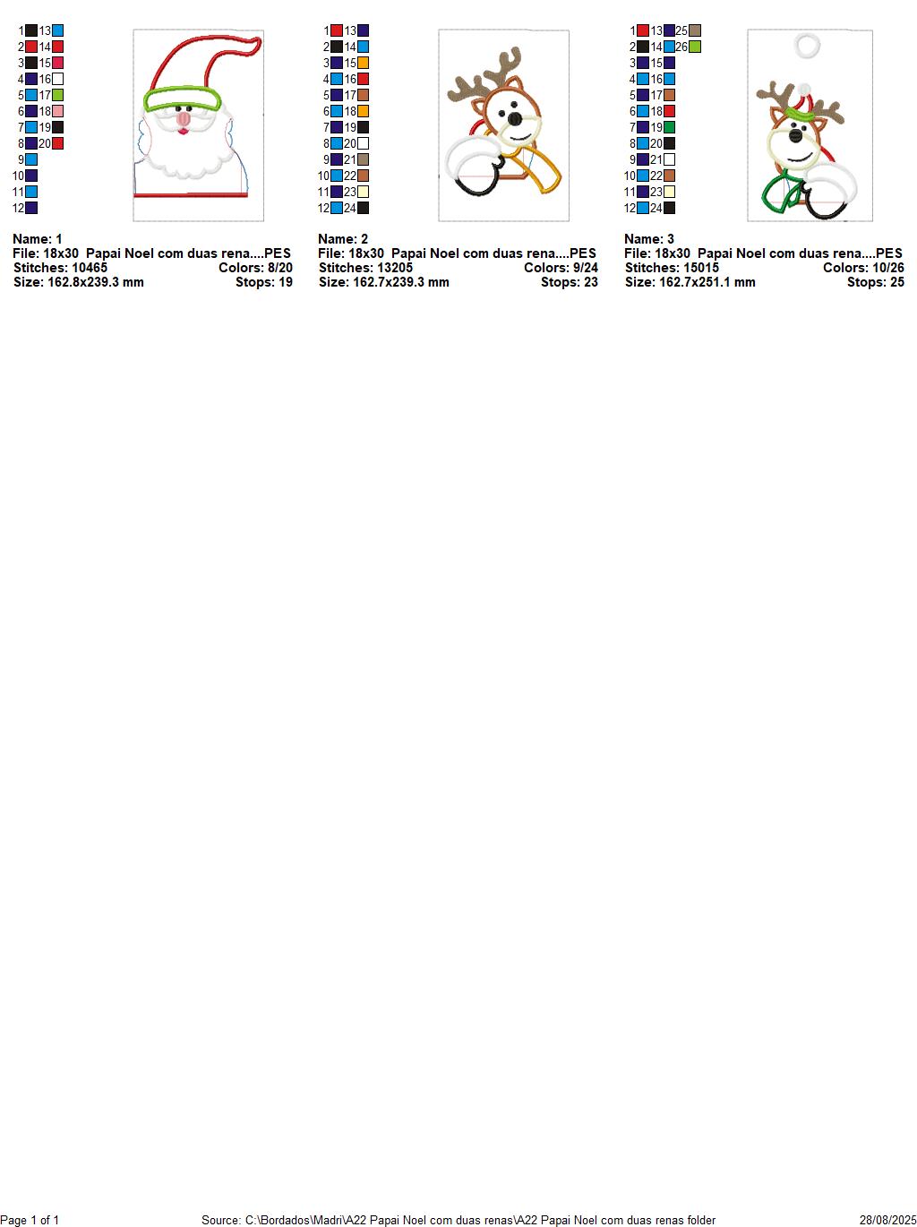 Matriz de Bordado Papai Noel com Renas para Toalhas e Tecidos – Projeto ITH