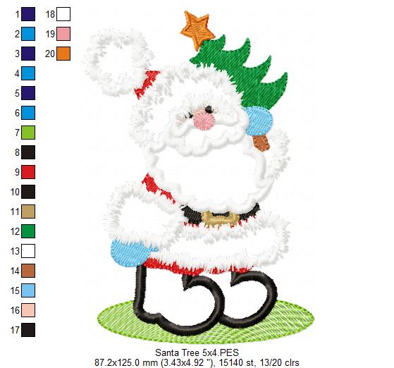 Matriz de Bordado Papai Noel Fofo Segurando Árvore – Aplique