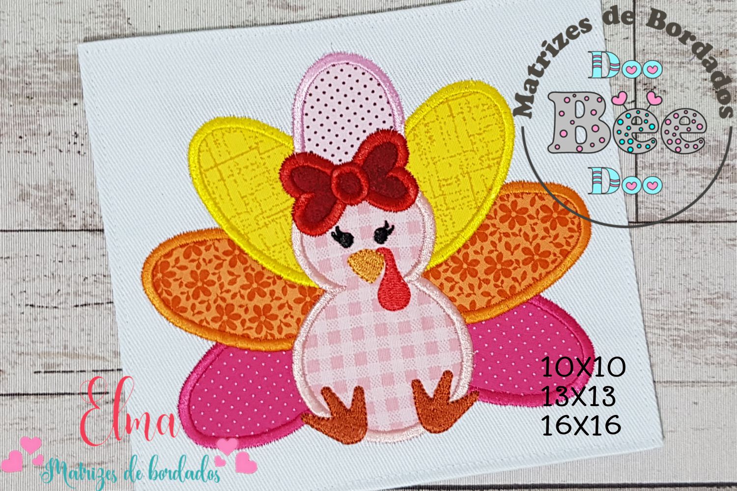 Essa matriz de bordado traz um charmoso peru com lacinho, ideal para criações temáticas como o Dia de Ação de Graças, decorações de outono ou até peças infantis criativas e divertidas! 🍁🎀