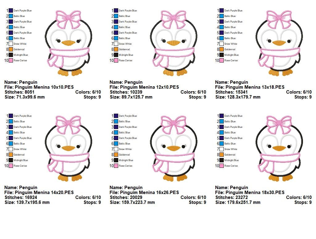 Matriz de Bordado Pinguim Fofinha com Cachecol e Laço – Aplique
