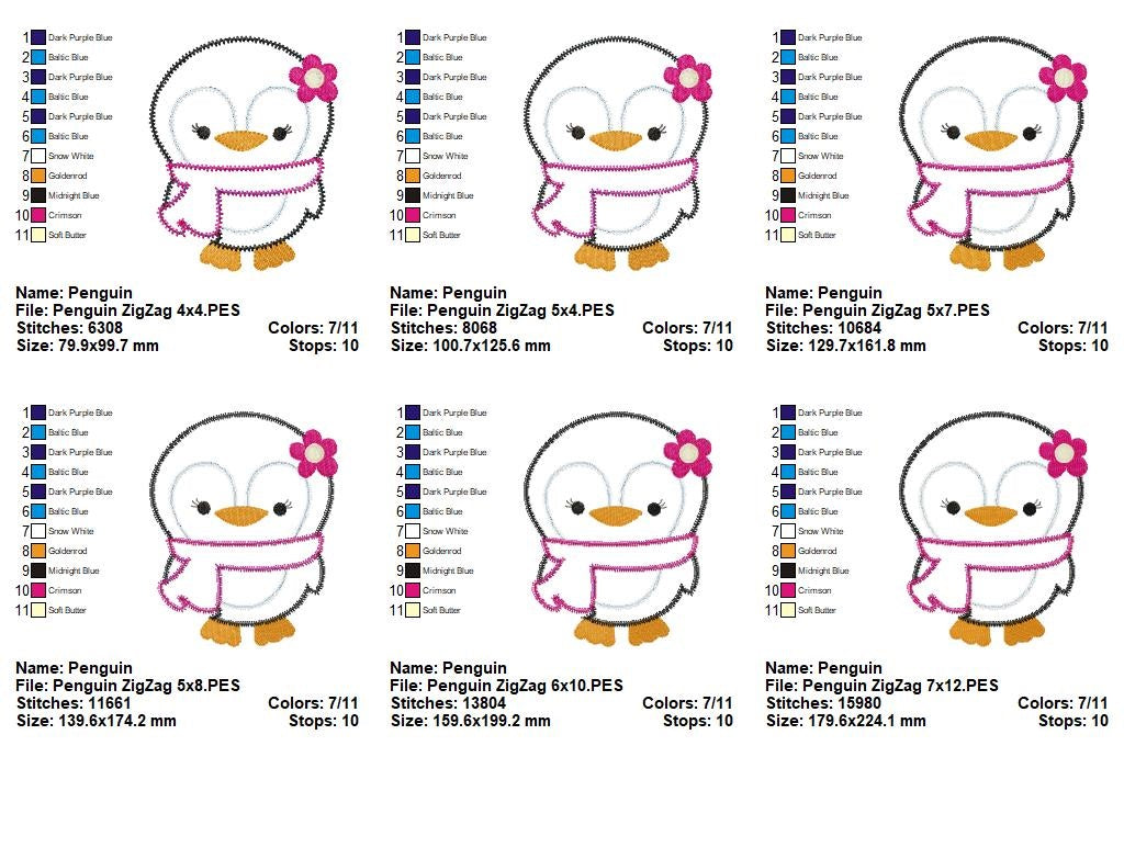 Matriz de Bordado Pinguim Menina com Cachecol – Aplique Zig Zag