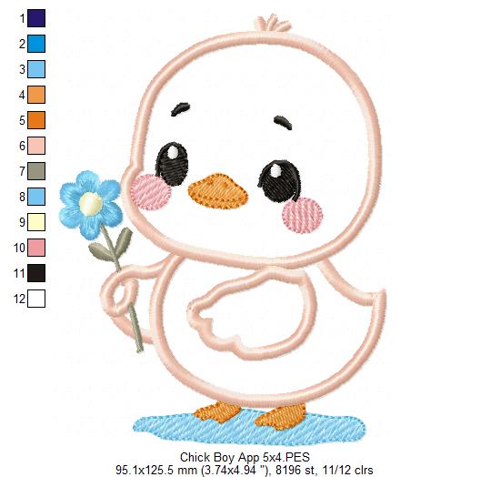 Um pintinho super fofo segurando uma flor 🌸🐥, cheio de ternura para encantar seus bordados!