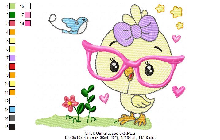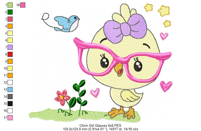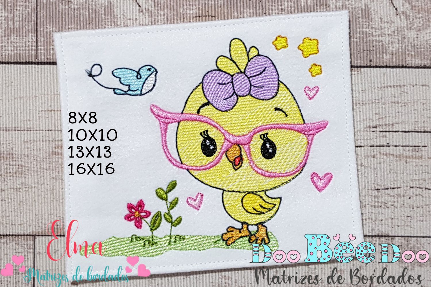 Matriz de Bordado Pintinho com Óculos Rosa e Lacinho – Rippled