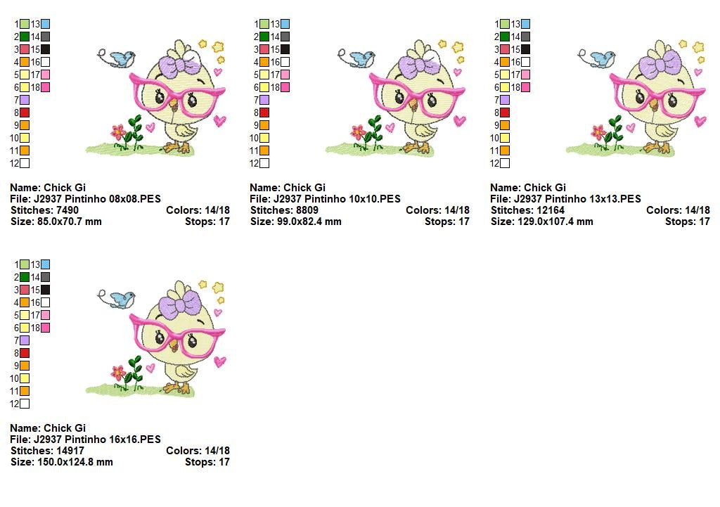 Encante seus projetos com essa matriz super charmosa do pintinho com óculos rosa, lacinho lilás e elementos delicados como corações, flores e até um passarinho! 🐤💖 Uma combinação perfeita de fofura e estilo para deixar roupas, toalhas, paninhos e peças infantis ainda mais especiais! 😍✨