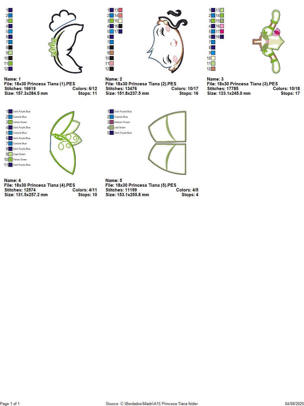 Matriz de Bordado Princesa Tiana – Projeto ITH
