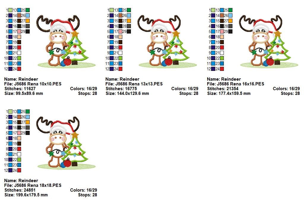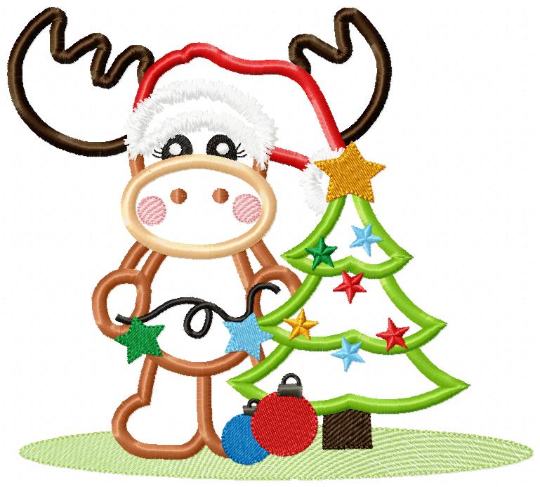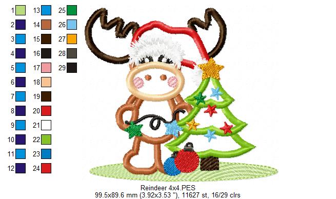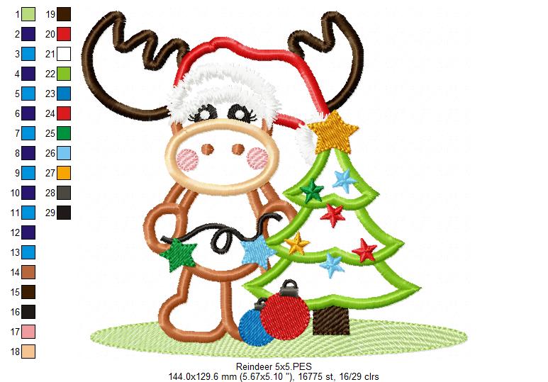 Matriz de Bordado Rena Natalina com Árvore – Aplique