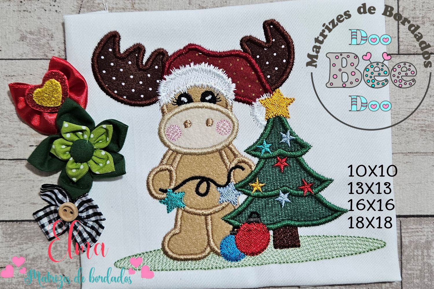 A Matriz de Bordado Rena Natalina com Árvore – Aplique chegou para deixar suas criações ainda mais encantadoras! ✨🦌🎄