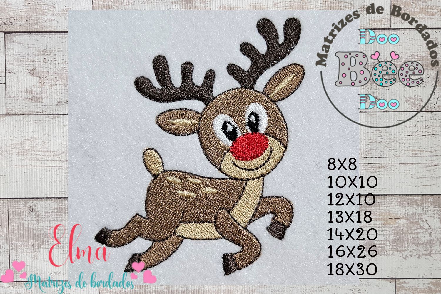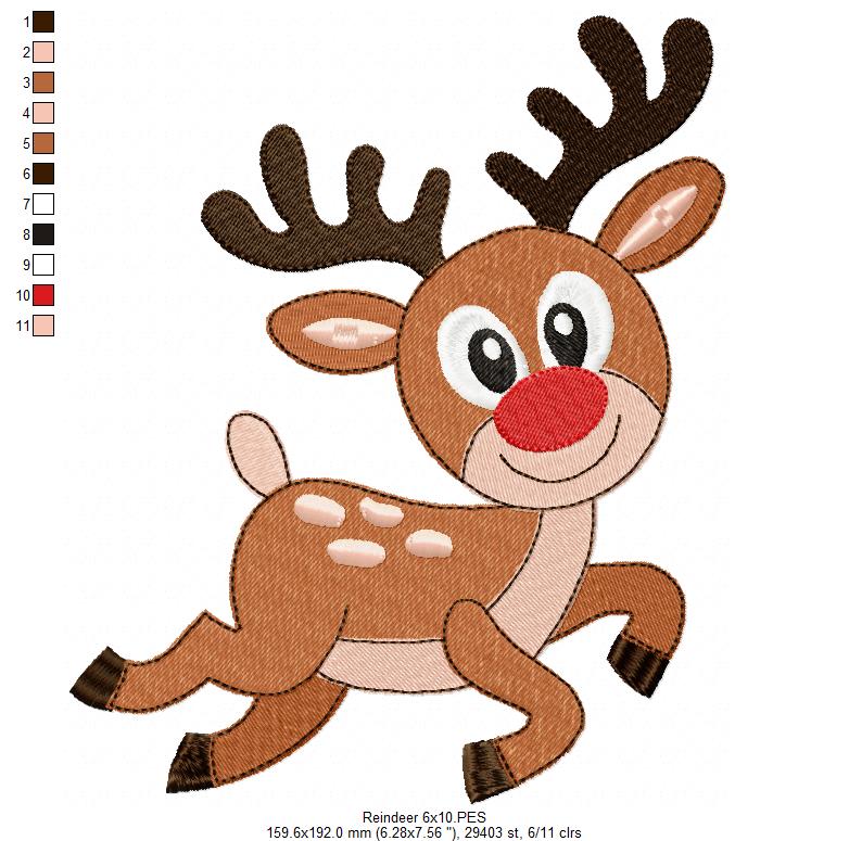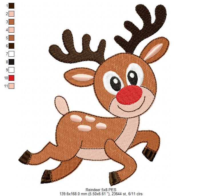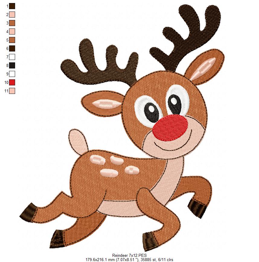 Matriz de Bordado Rena Natalina Fofa – Ponto Cheio
