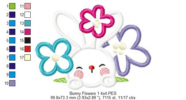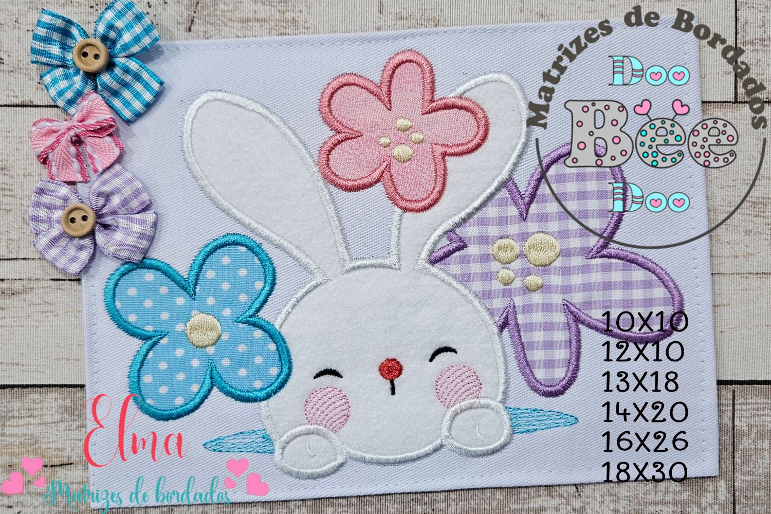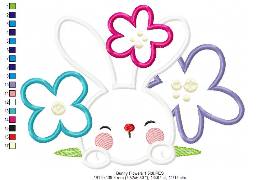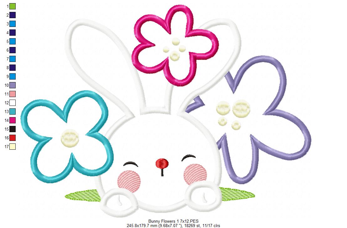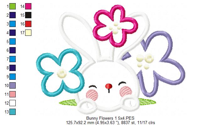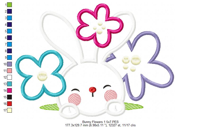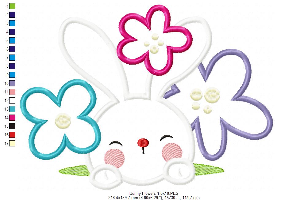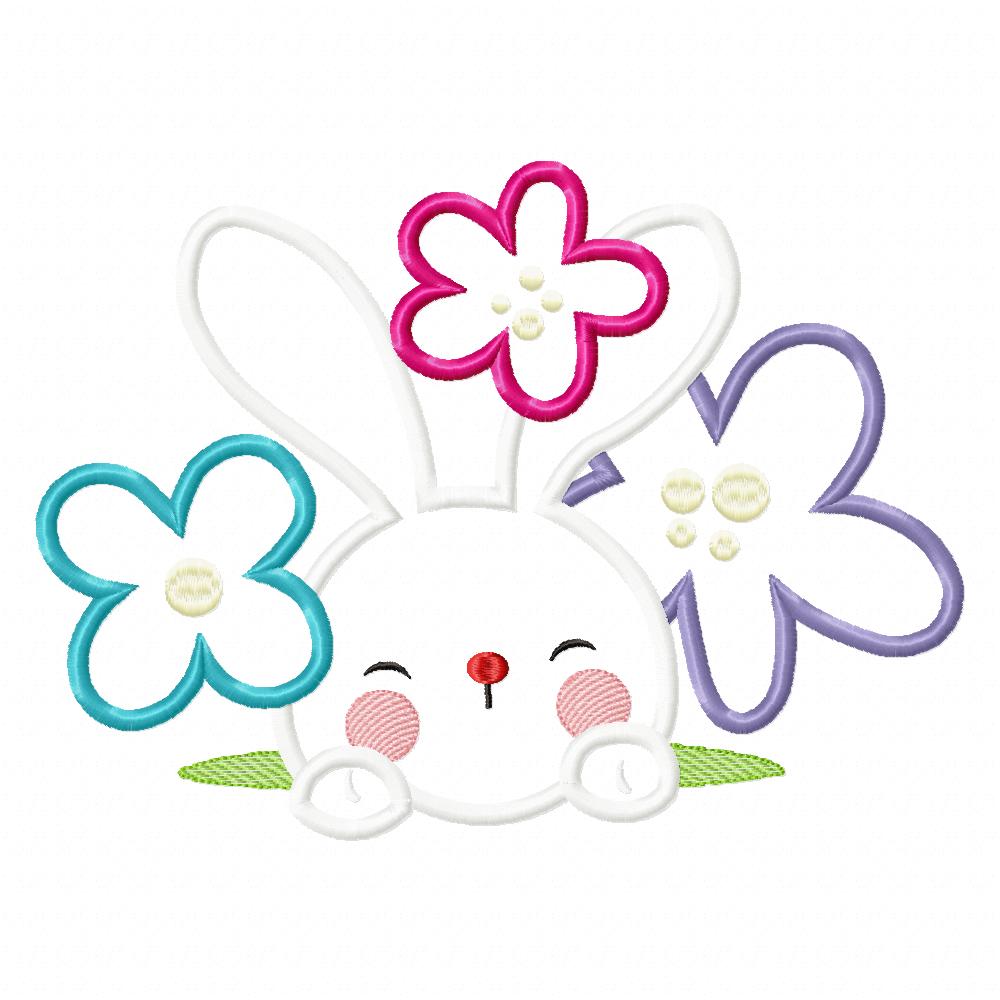 Matriz de Bordado Rosto de Coelho com Florzinhas – Aplique