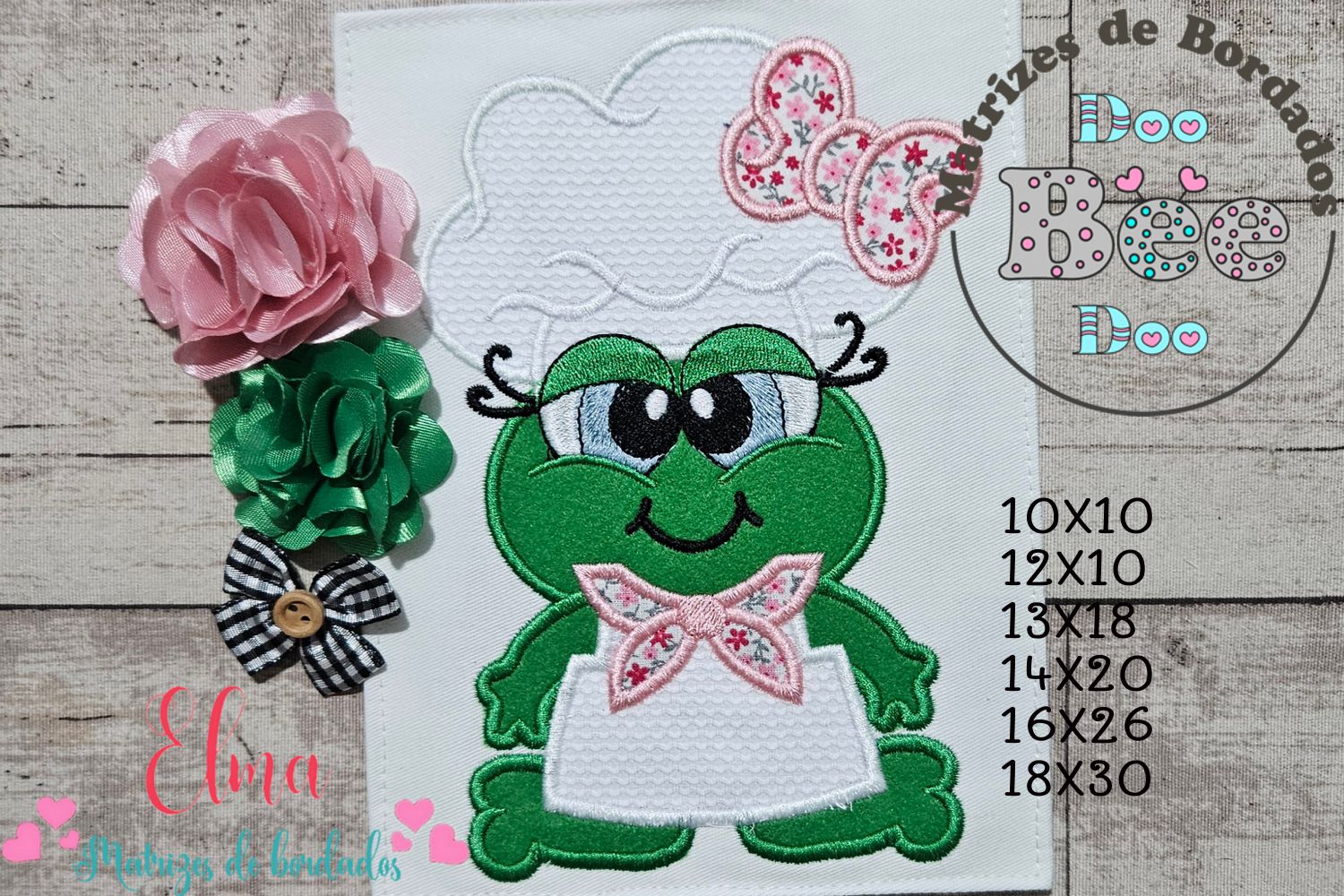 Matriz de Bordado Sapa Fofinha com Touca de Chef – Aplique