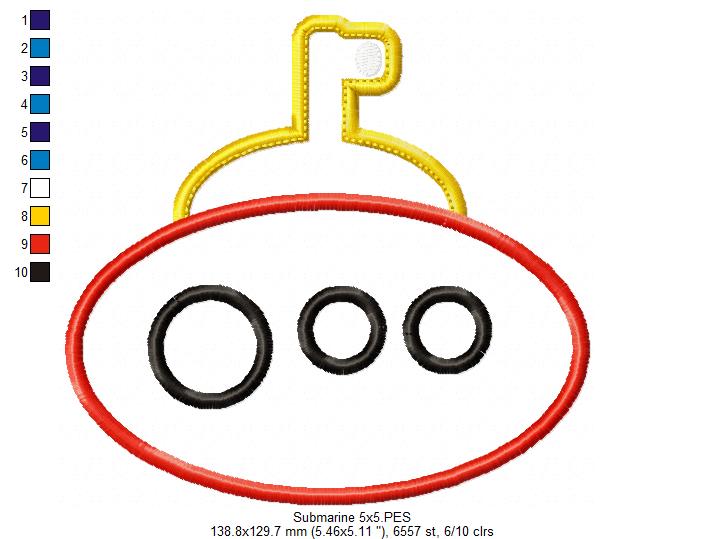 Matriz de Bordado Submarino Infantil com Janelas Redondas – Aplique