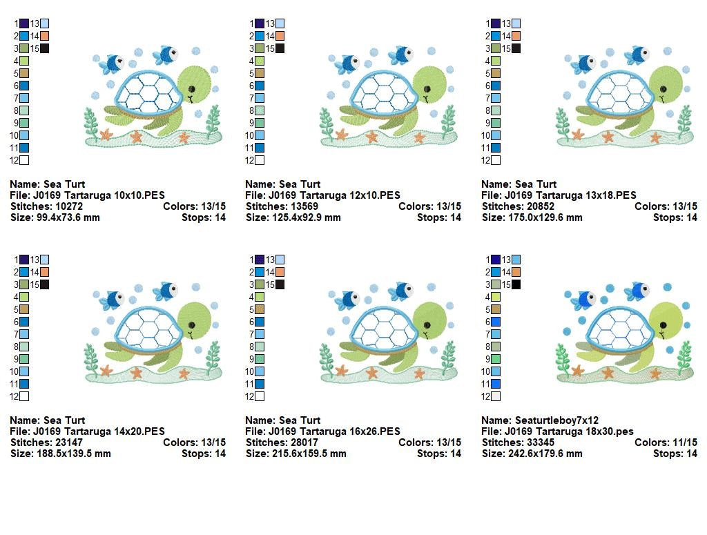 Matriz de Bordado Tartaruga com Peixinhos no Fundo do Mar – Aplique