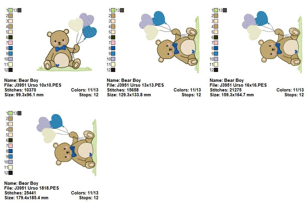 Matriz de Bordado Ursinho com Balões – Ponto Cheio