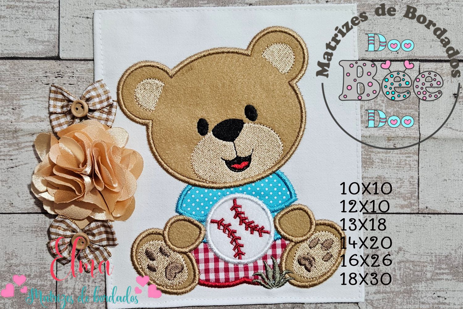 Matriz de Bordado Ursinho com Bola de Beisebol – Aplique
