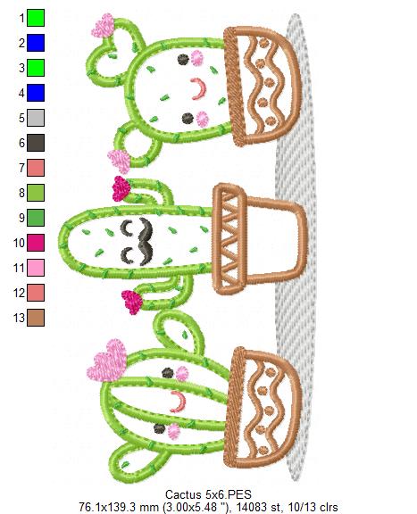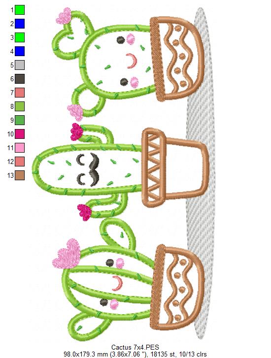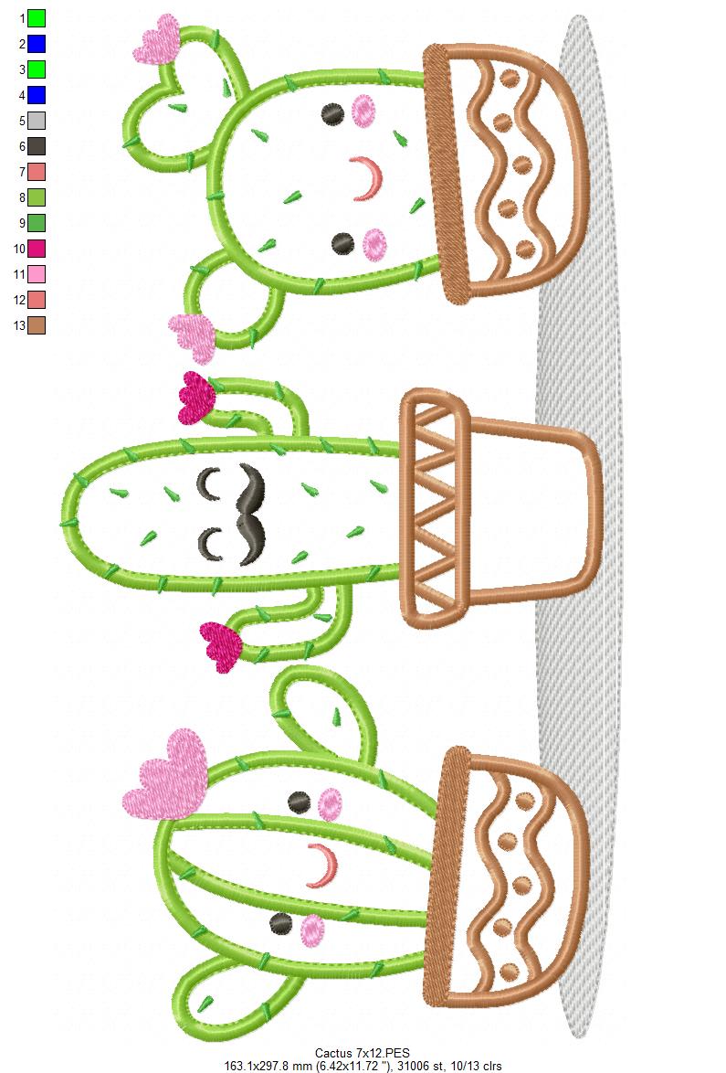 Matriz de Bordado Vasos com Cactos Divertidos – Aplique