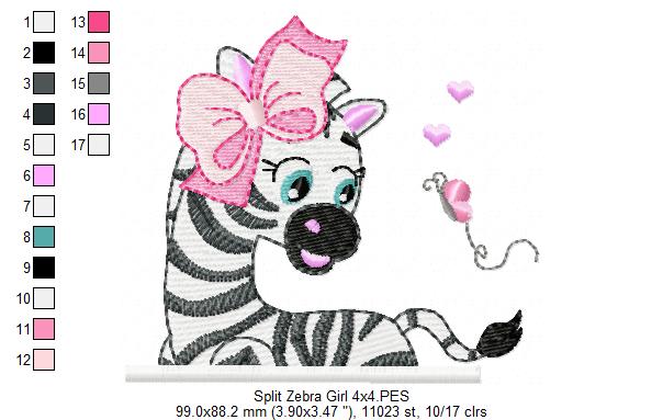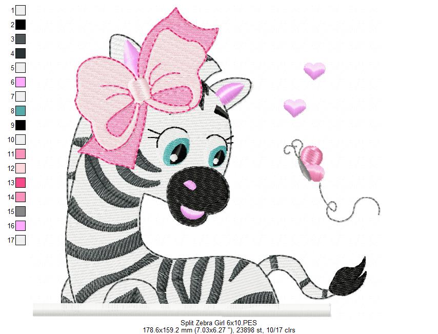 Matriz de Bordado Zebra Carinhosa com Laço – Ponto Rippled