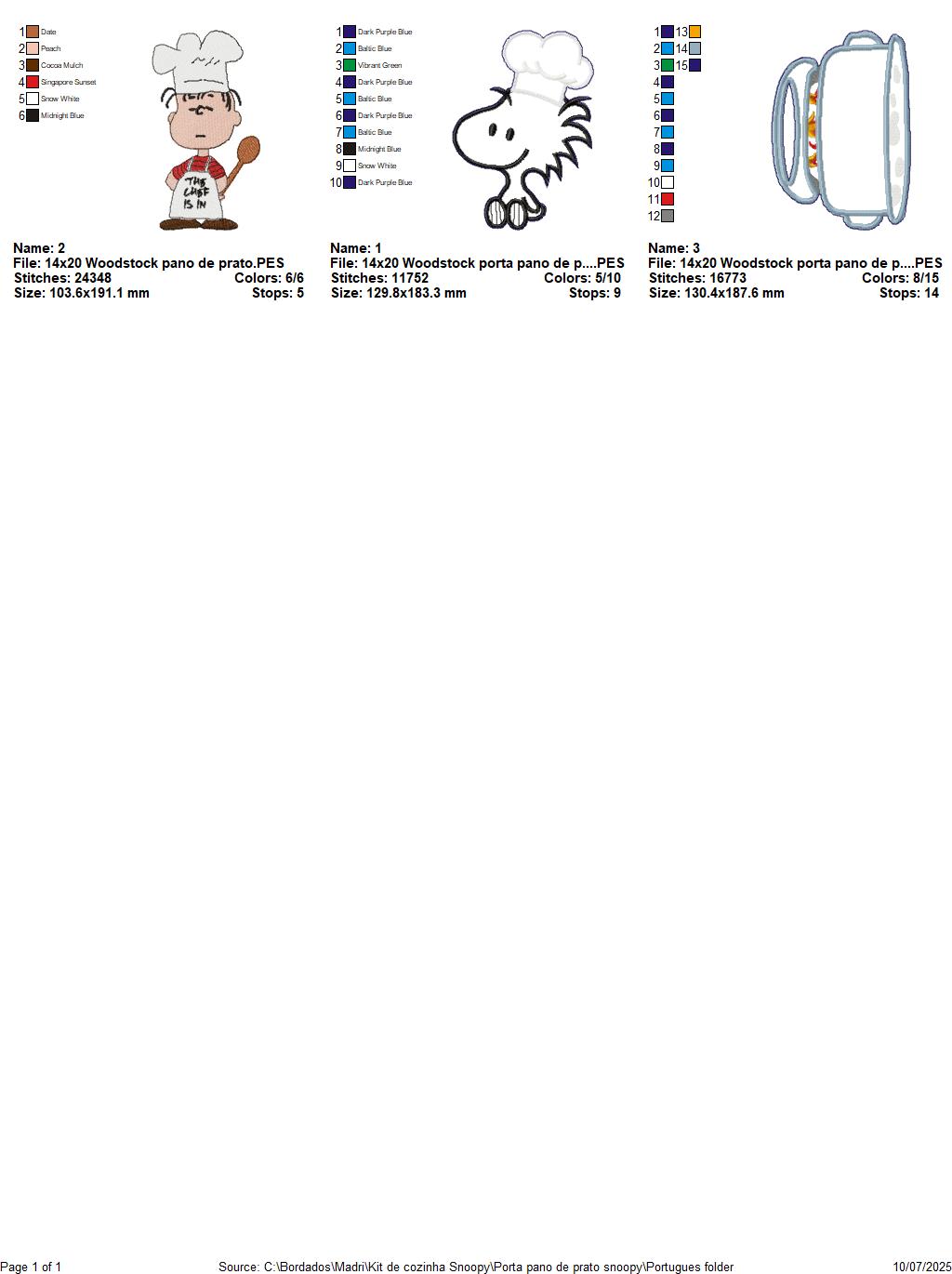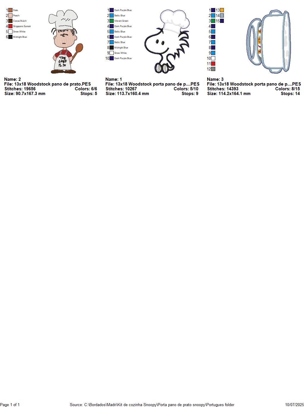 Matriz de Bordado Snoopy Cozinheiro Suporte de Pano de Prato - Projeto ITH