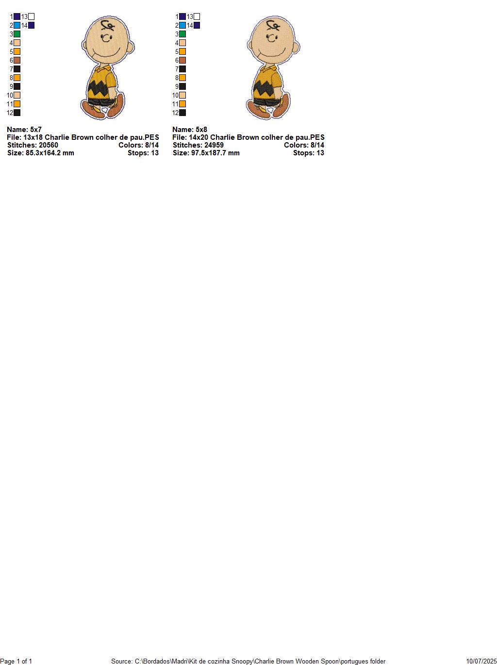 Matriz de Bordado Snoopy e Charlie Brown para Colher de Pau - Projeto ITH