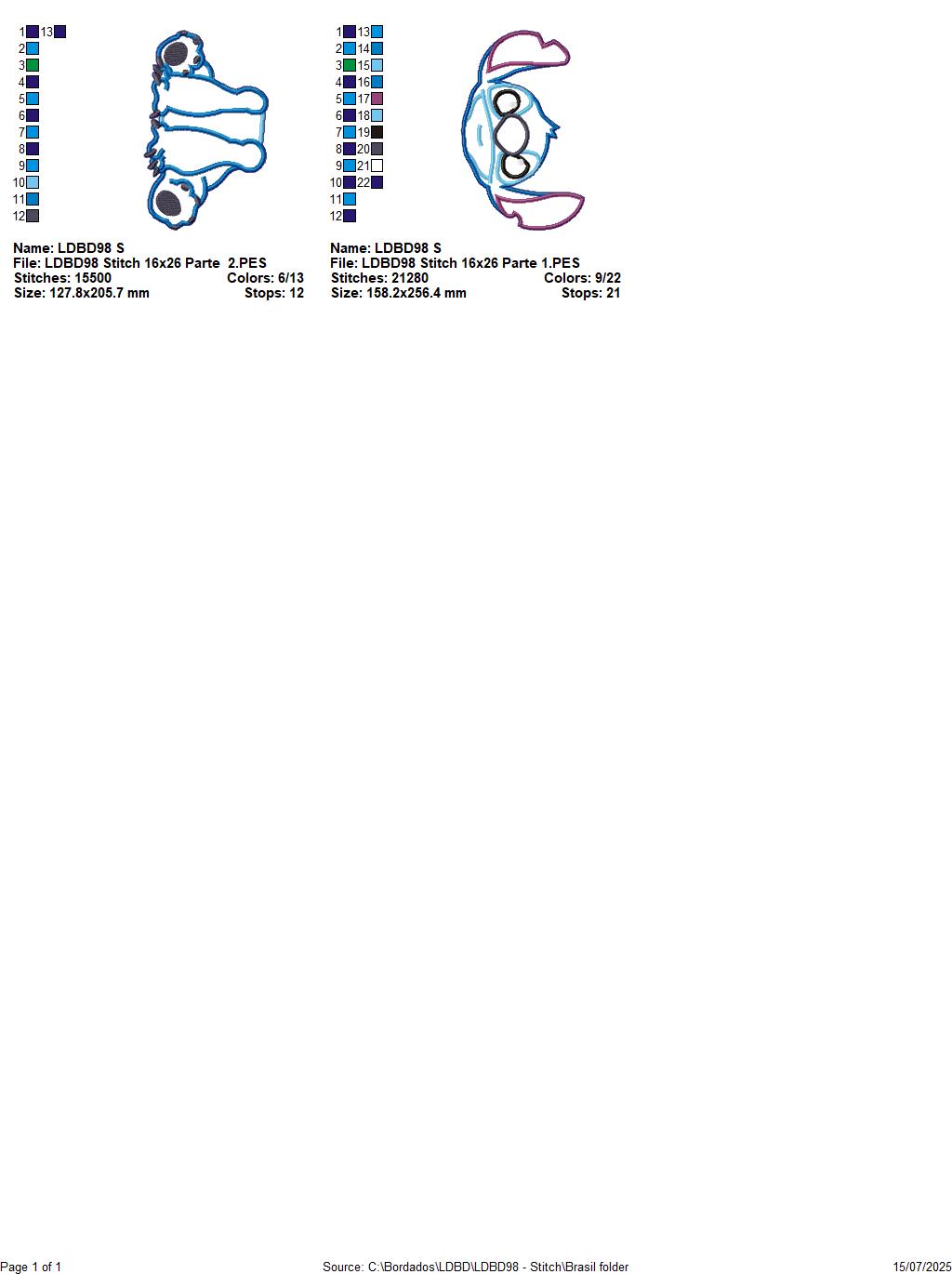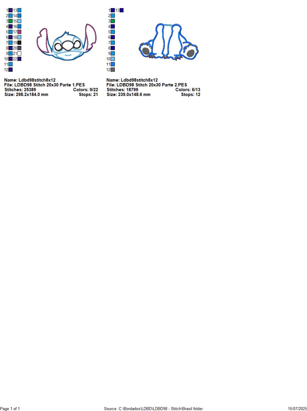 Matriz de Bordado Stitch Foto Sentado – Projeto ITH